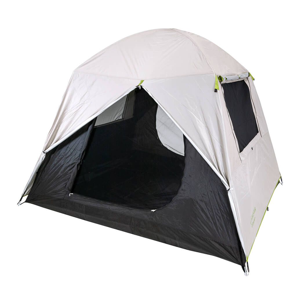 Σκηνή 4 ατόμων Διαστάσεις: Μ210 x Π240 x Υ180cm Διπλό πανί Εξωτερικό Υλικό: 190Τ Polyester Silver + PU coated Αδιαβροχοποίηση: 1500mm Εσωτερικό Υλικό: 190Τ Polyester διαπνέον + κουνουπιέρα Ραφές με θερμοκόλληση Πάτωμα: 210D Oxford PU1500mm Σκελετός: Fiberglass 2×8,5mm με γωνίες Πόρτες: 2 με κουνουπιέρα Παράθυρα: 2 με κουνουπιέρα και κλείσιμο με φερμουάρ UV+30 αντιηλιακή προστασία Πρακτικές τσέπες εσωτερικά του δωματίου